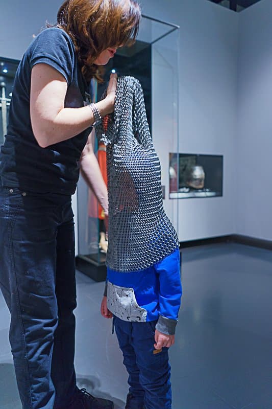 Ludwig hat ganz schön gestaunt, wie schwer so eine Ritterkleidung war. Kein Wunder, dass die Ritter immer ihren Pagen oder Knappen dabei hatten, der ihnen beim An- und Ausziehen half. Alleine wäre das ganz schön schwierig geworden. Wie die mit ihrer ganzen Montur aufs Pferd gekommen sind und dann auch noch gekämpft haben, ist mir ein Rätsel.