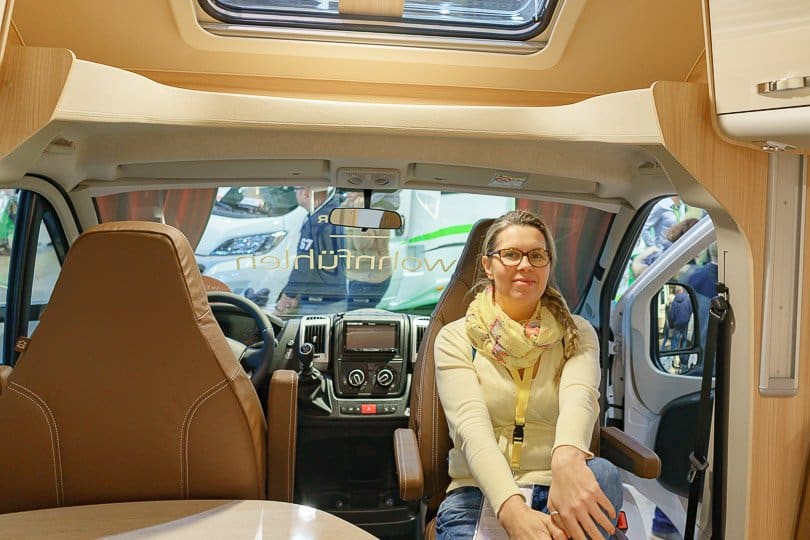 Meinen Mann zogen die Messe-Stände für das Zubehör magisch an. Es ist ja nicht so, das wir nicht schon alles hätten. Jetzt geht es um das „Feintuning“ sozusagen. Da wird nach einem fest eingebauten W-LAN-Router gesucht oder nach neuen Bezügen für die Sitzbänke. Eine neue Markise bräuchten wir auch, denn unsere alte stinkt total und hat Stockflecken. An den Messeständen für Zubehör gibt es alles, was das Camper-Herz begehrt. Nicht umsonst ist dort immer ein wahnsinniges Gedränge.