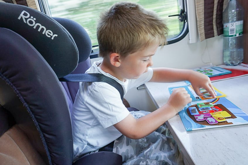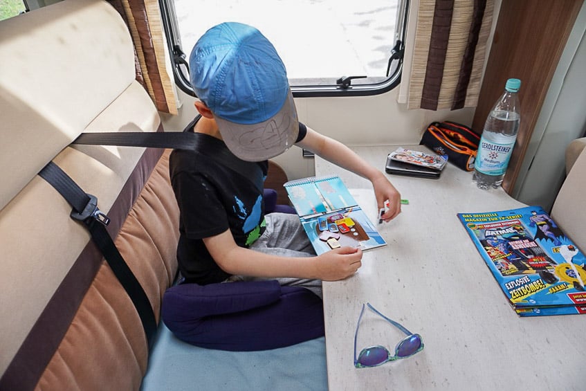 Wenn wir mit dem Wohnmobil unterwegs sind, darf bei uns immer ein Kind vorne, als Beifahrer sitzen und den Papa bespaßen. Für das andere Kind übernehme ich auf dem Rücksitz das Entertainmentprogramm.
