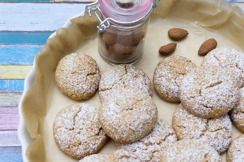 Die Mandelkekse mit Puderzucker bestäuben und genießen