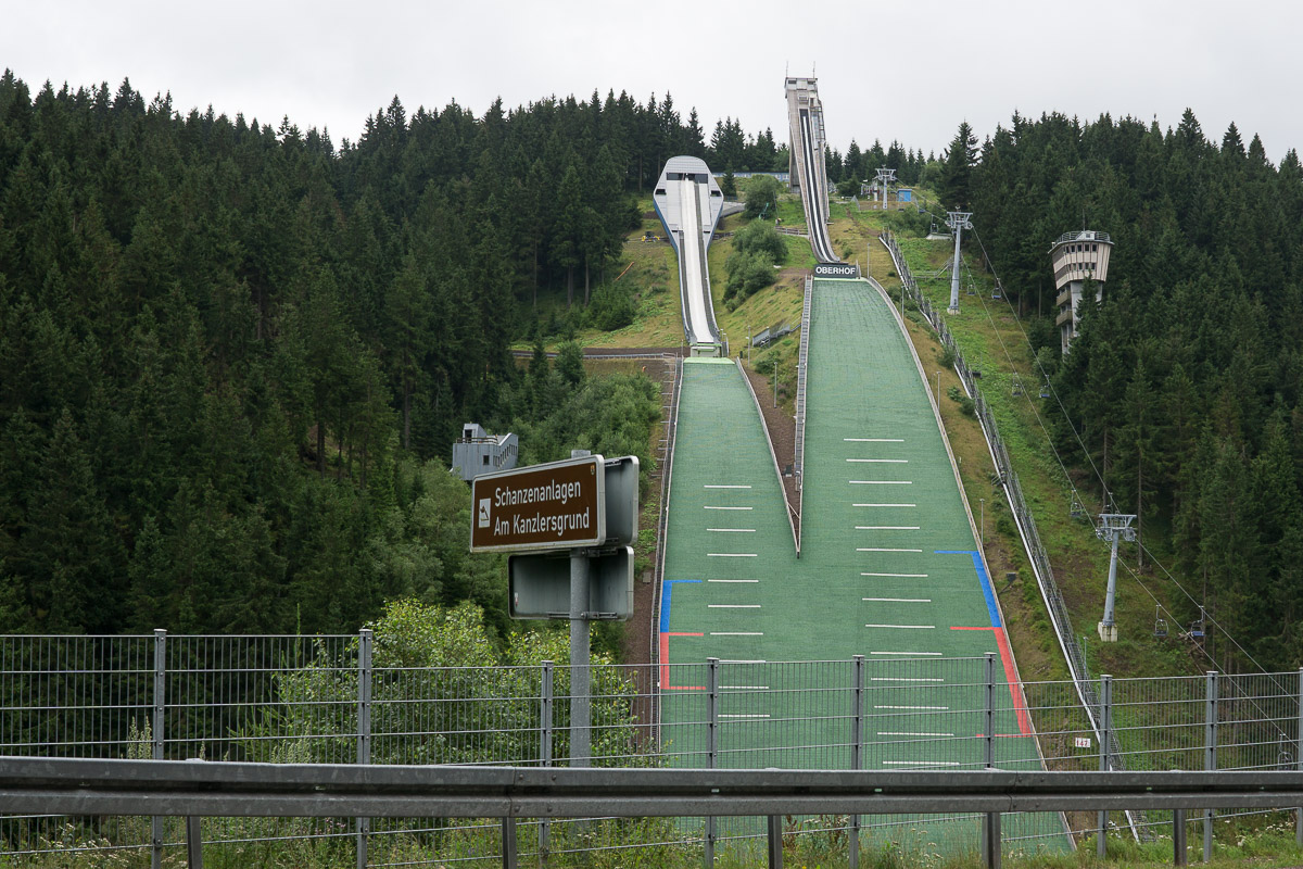 Nachdem wir schon einen Tag in der Therme H2Oberhof verbracht hatten, beschlossen wir, uns die Sportstätten in Oberhof noch anzuschauen. In der Touristen-Information liegen jede Menge Flyer aus, für alle möglichen Unternehmungen in und um Oberhof. Wir haben uns die Rennschlitten- und Bobbahn angeschaut. Dort gibt es die Möglichkeit, selber runter zu fahren. Im Gästebob Oberhof kann man puren Nervenkitzel erleben. Mein Mann wollte es unbedingt ausprobieren. Leider war die Bobbahn wegen Wartungsarbeiten geschlossen.