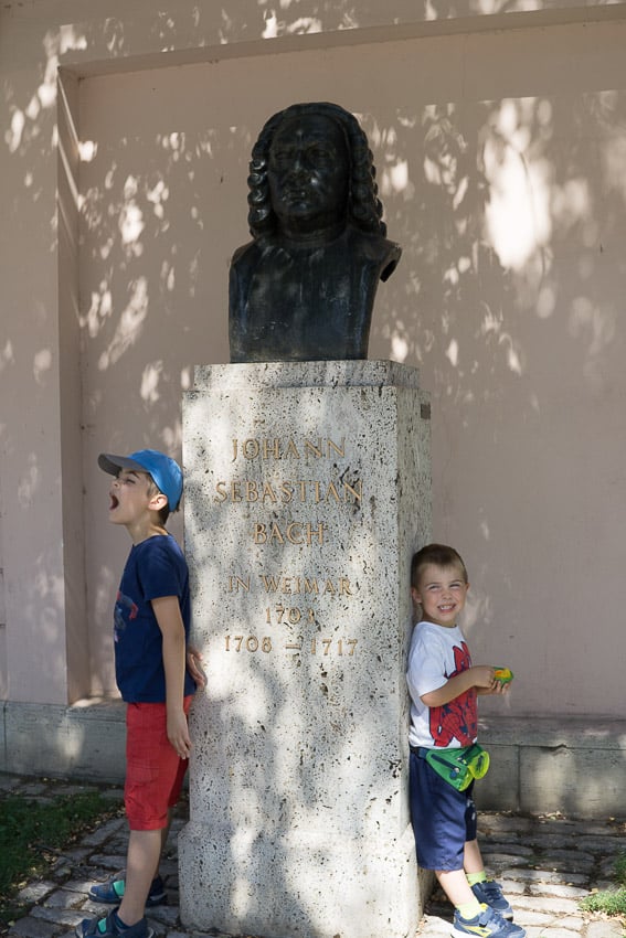 Weil wir mit unseren „lauf-faulen“ Jungs die Stadt nicht zu Fuß erkunden wollten, haben wir uns ein besonderes Highlight gegönnt, eine Stadtführung per Kutsche. Kutschfahrten kann man in Weimar entweder direkt bei der Touristeninformation buchen oder bei den zahlreichen Kutschern direkt. Wir haben unsere Fahrt beim Fuhrgeschäft Schaarschmidt direkt vor Ort gebucht.