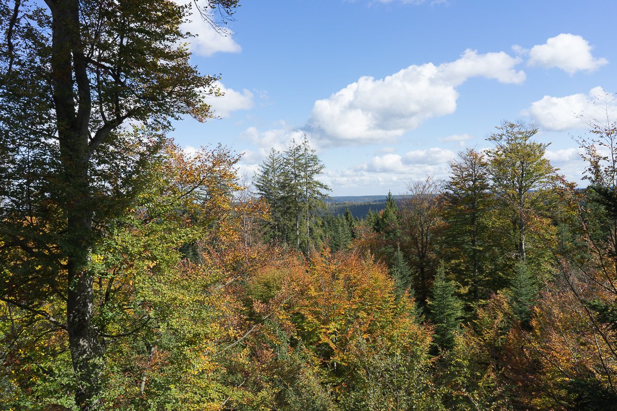 Am Ende des Pfades wartet auf den Besucher ein atemberaubender Blick von einem phantastisch konstruierten Aussichtsturm. Den Blick in den tiefen weiten Schwarzwald sollte man sich nicht entgehen lassen.